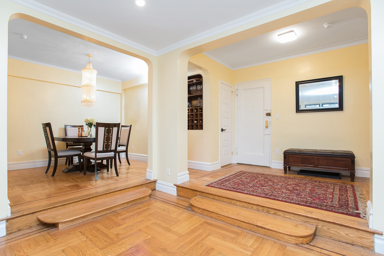 An interior renovation of an 850 SQFT one bedroom unit located on the second floor of a prewar multi-family elevator dwelling built in 1942. The co-op building resides within the West End Collegiate historic district of New York City which meant we were regulated to not only the parameters set by the New York City’s Department of Buildings, but also the guidelines of New York City’s Landmarks Preservation Commission. Additionally, we were subjected to a strict alteration agreement between our client and his co-op board which included a building architect reviewing our work. Satisfying (4) parties with the client’s best interests in mind ultimately established the major challenge on this project and its design. The overall goal was to reconfigure and design the kitchen and bathroom to create a more practical and functional space from its current condition and arrangement. The scope also required us to update all the finishes, plumbing, and lighting of the other spaces comprising of a bedroom, living room, dining room, and foyer. In the end the result was a fully renovated apartment, rearranged bathroom, and kitchen with all new fixtures. We also were able to design and create a large opening between the kitchen and living room that opened the space creating a less segregated apartment. A wine rack was designed to replace built in shelving in the dining room and we visualized an entry bench that would have storage for coats and all the client’s dog walking needs.